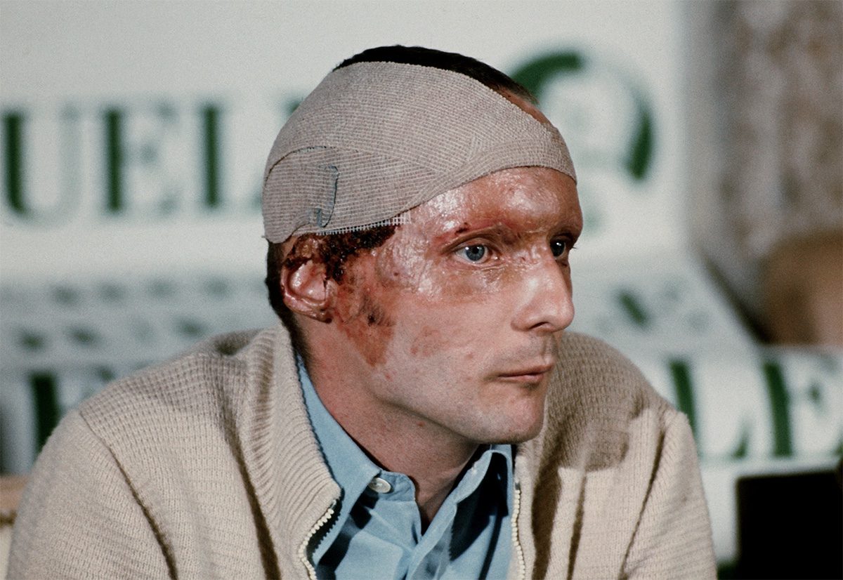 Beim Aufprall riss es Lauda den Helm vom Kopf, was zu schweren Verbrennungen an Kopf und Gesicht führte. Der Rennfahrer wurde schnell ins Krankenhaus gebracht, wo er ins Koma fiel. Die Ärzte gaben düstere Prognosen ab. Doch nur eineinhalb Monate später stürzte sich der mutige Rennfahrer mit einem Verband am Kopf wieder ins Renngeschehen und wurde beim Großen Preis von Italien Vierter. Sein nächster Erfolg war ein Platz auf dem Podium in den USA.