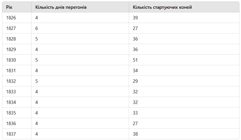 30 березня 1826 року «Віденський комітет ставок і перегонів» провів перші публічні кінні перегони з тоталізатором. До 1837 року в перегонах брали участь від 27 до 51 коня протягом чотирьох-п’яти днів. У 1837 році «Віденський комітет ставок і перегонів» припинив свою діяльність, а на його зміну прийшло «Віденське товариство кінних перегонів», яке організовувало перегони до 1853 року.